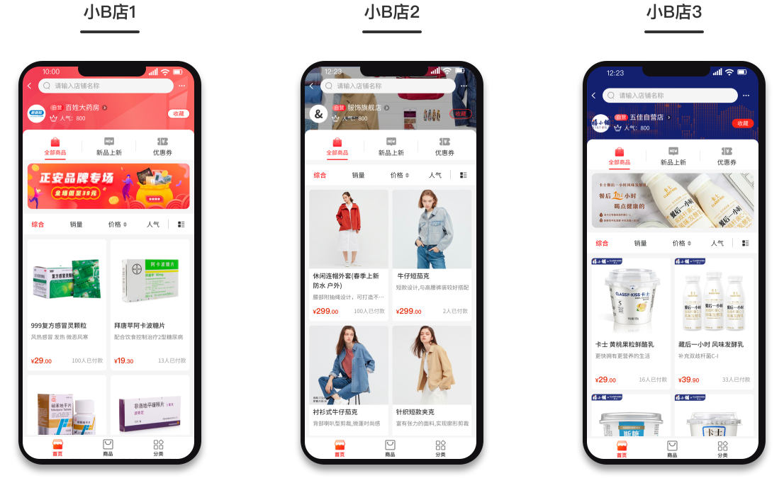 一键开店,千店千面,小B商城入驻平台,平台总控,店铺可自主经营
